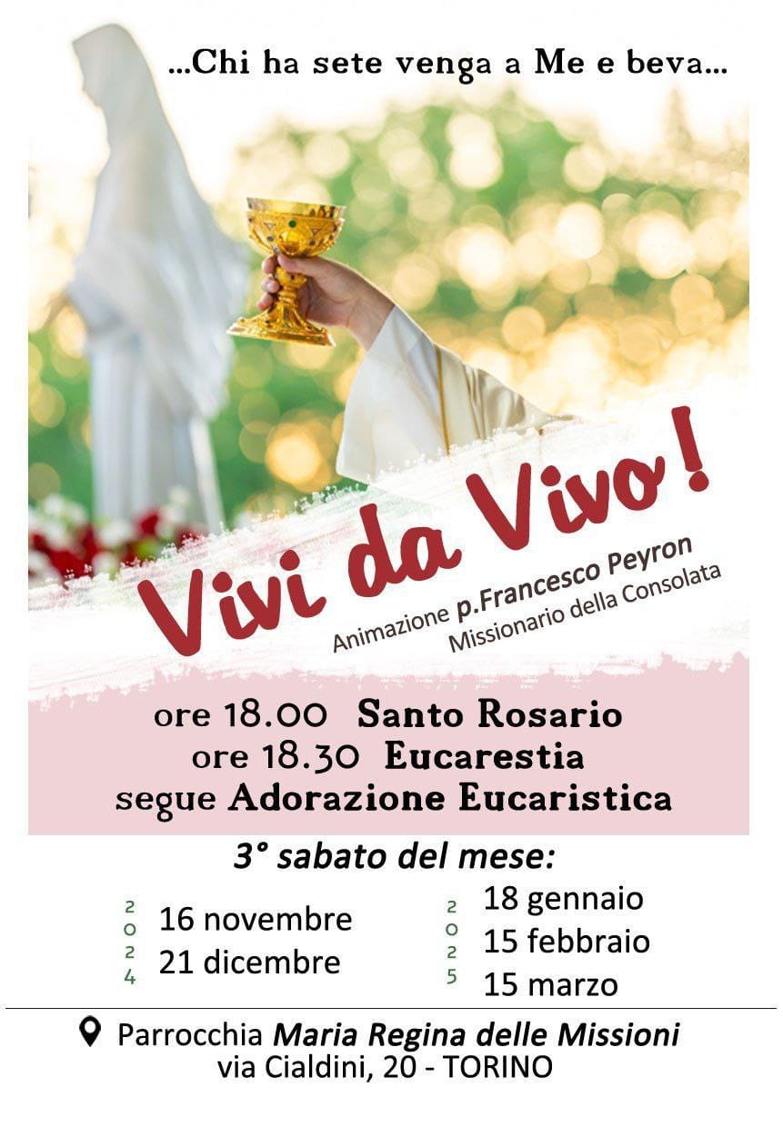 Per chi abita in zona Torino sabato 21 dicembre Padre Francesco sarà nella chiesa parrocchiale Regina delle Missioni, via Cialdini 20, per la S.Messa e la successiva Adorazione Eucaristica.
